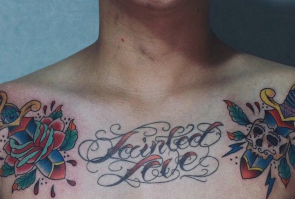 纹身图案胸部男 简洁大方的男生胸部纹身图案
