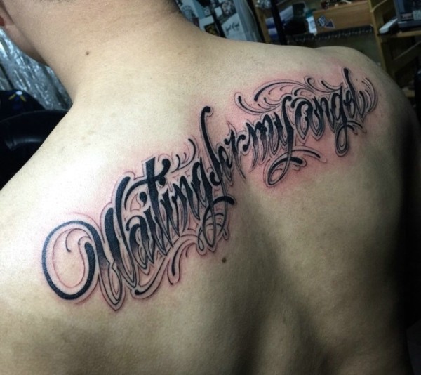 一眼就能见到的背部大体英文纹身