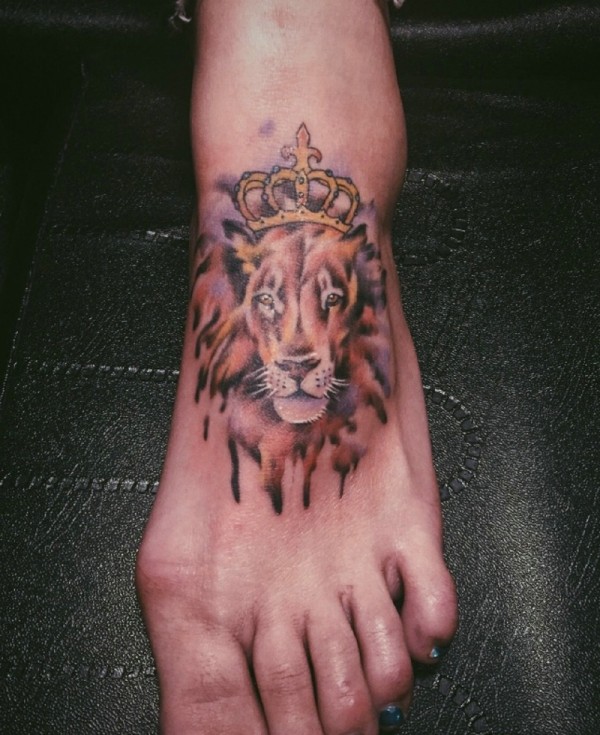脚面水彩皇冠狮子纹身