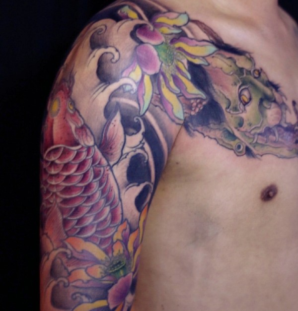 鲤鱼和般若结合的半甲纹身