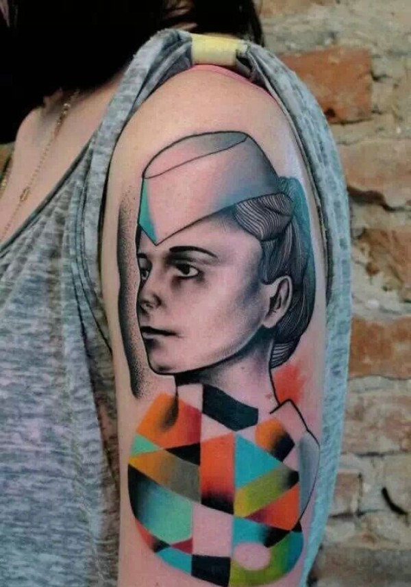 女性肩部肖像刺青_肖像纹身图案大全_纹身图吧