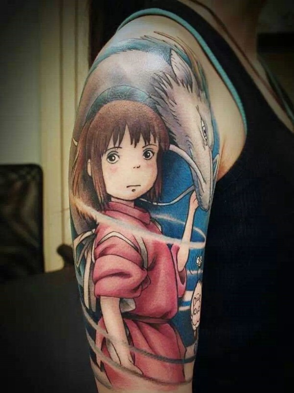 非常可爱动人的花臂动漫纹身