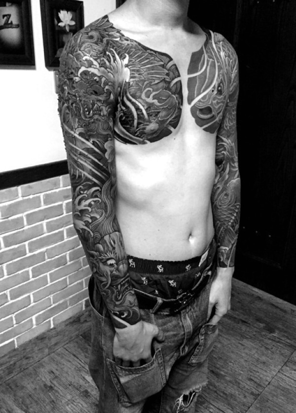 日式手彫刺青作品—半甲龙很感谢客户认可手彫刺青,手彫是日本纹身的手工雕刻技术,时间可以追溯到日本17世纪的江户时代。19世纪,手彫技术被日本黑帮挪用,被用作入会仪式,象征着从此就是江湖中人。在日式传统