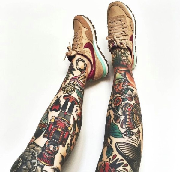 传统花腿纹身--18张传统风格的大花腿纹身图案作品