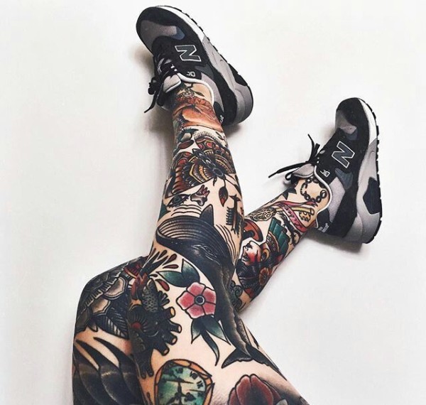 传统花腿纹身--18张传统风格的大花腿纹身图案作品