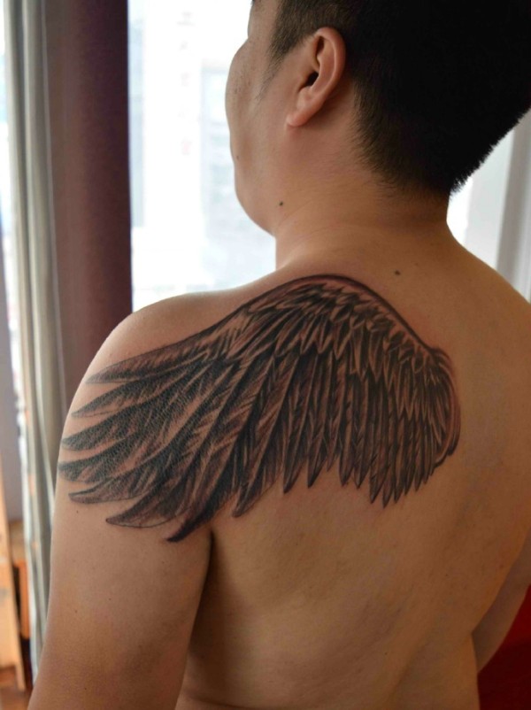 个性的半边翅膀后背纹身