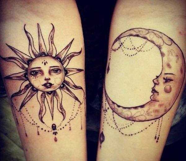 另类的太阳与月亮一起的手臂纹身