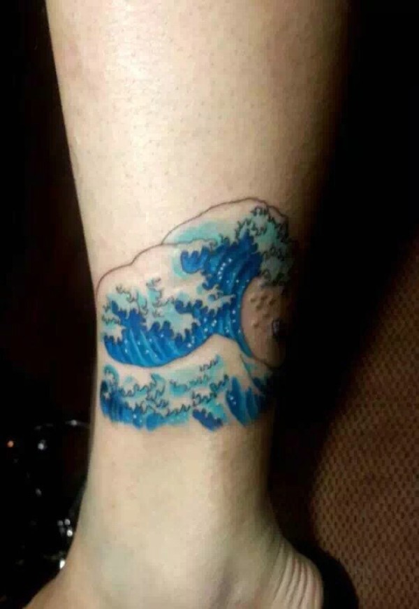 包小腿海浪纹身图案个性十足
