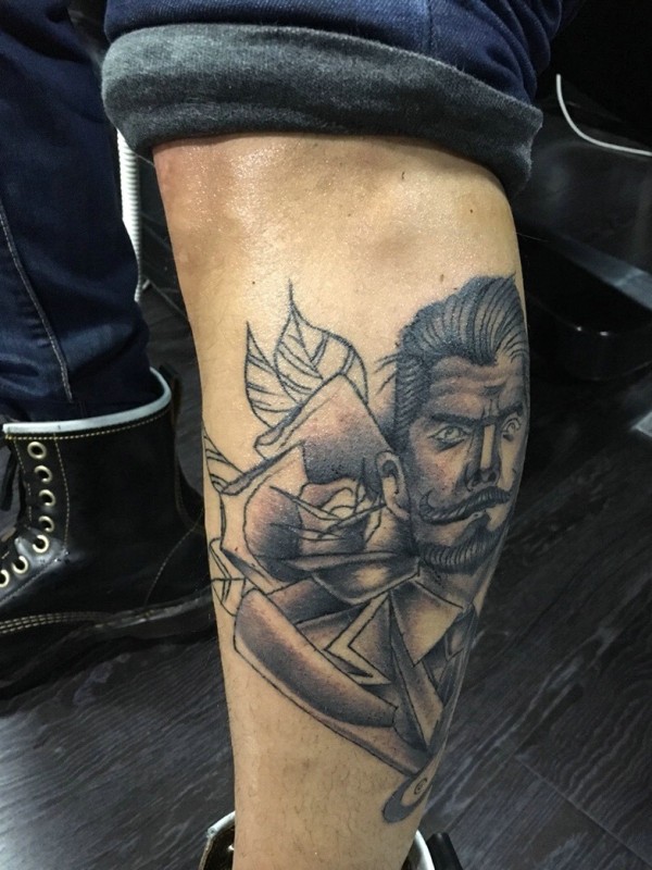 腿部炯炯有神的男士肖像纹身