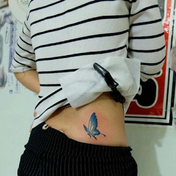 隐藏在女生侧腰部的小蝴蝶纹身