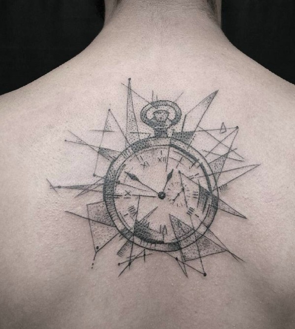 时间和几何点刺的个性图腾纹身