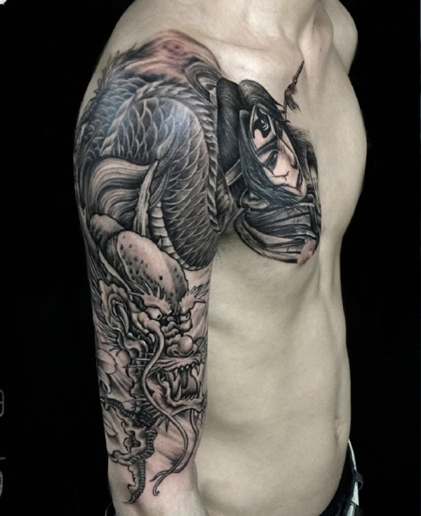 女性人物纹身图案 男生大臂纹身女性人物纹身图案