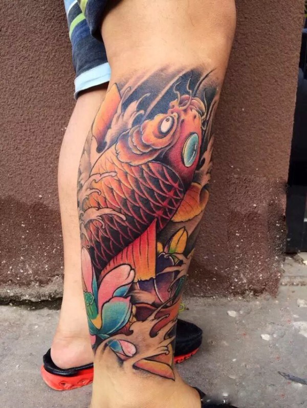 传统鲤鱼花小腿纹身_腿部纹身图案大全_纹身图吧