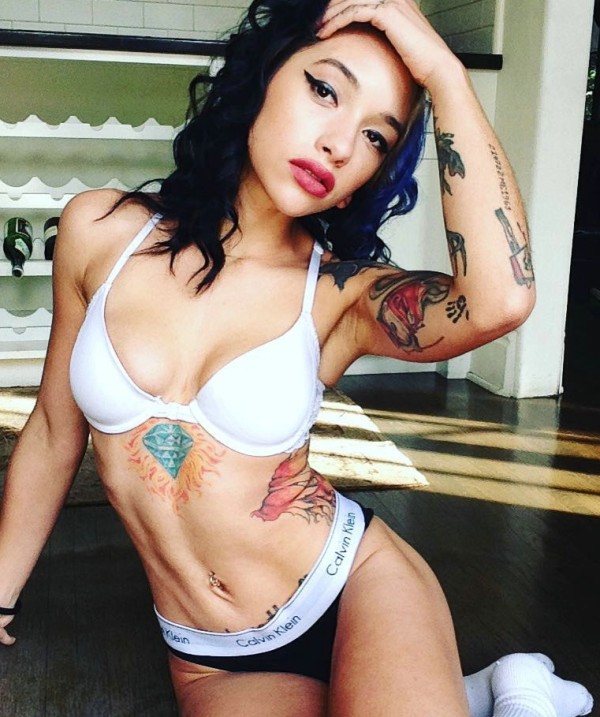 性感美女大方展示自己的花臂纹身