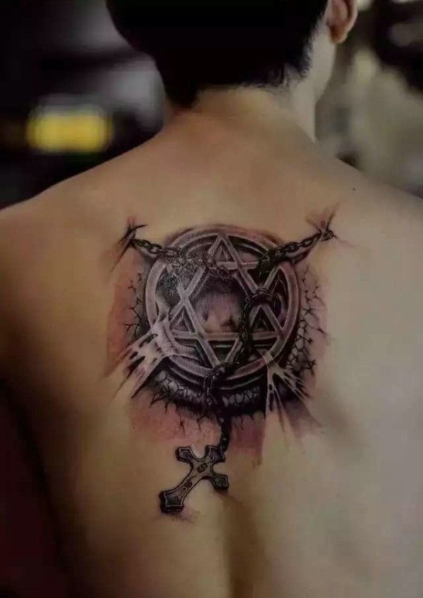 男性背部帅气的部落图腾纹身图案