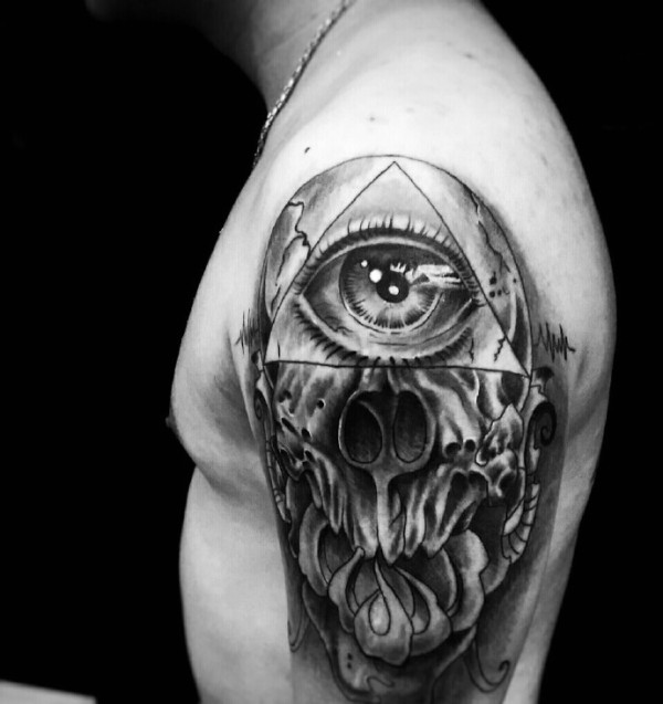 眼球和几何图形结合的大臂纹身