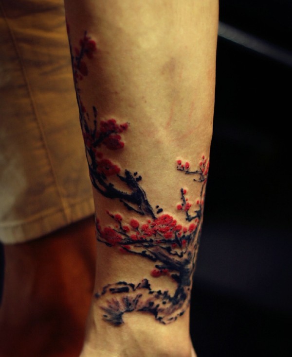 清新花朵腿部纹身图案图片_植物纹身图案大全_纹身图吧
