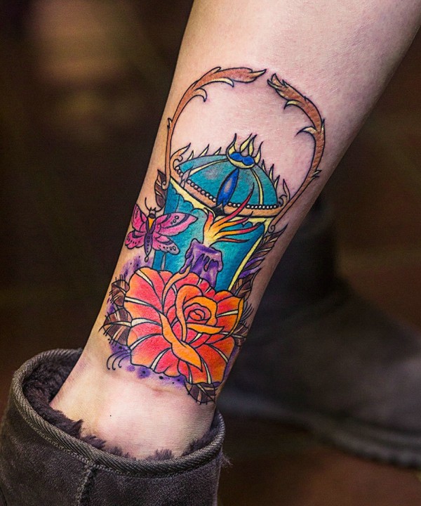 五颜六色的另类图腾腿部纹身