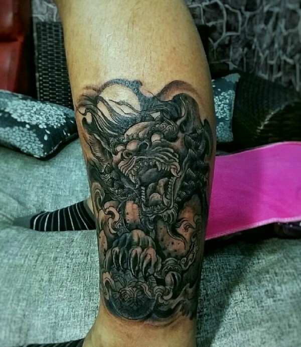 花腿纹身--一组大黑腿纹身图案作品欣赏