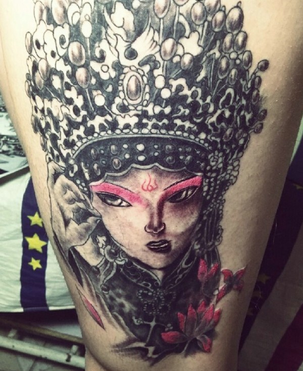 传统花腿纹身--18张传统风格的大花腿纹身图案作品
