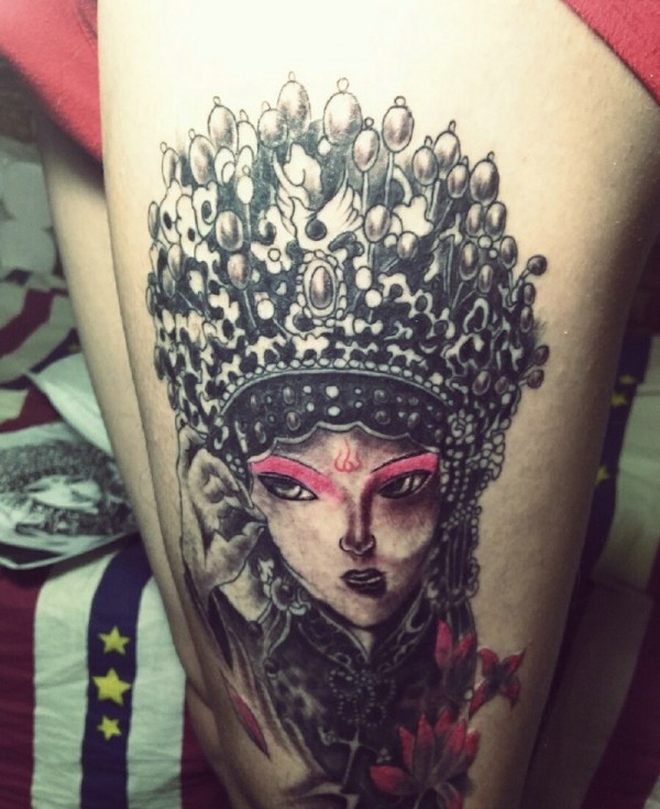 传统花腿纹身--18张传统风格的大花腿纹身图案作品
