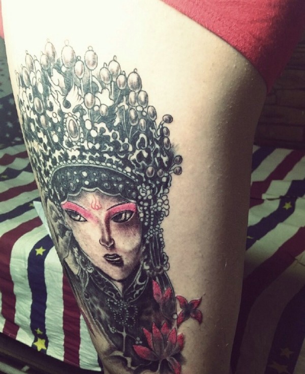 传统花腿纹身--18张传统风格的大花腿纹身图案作品