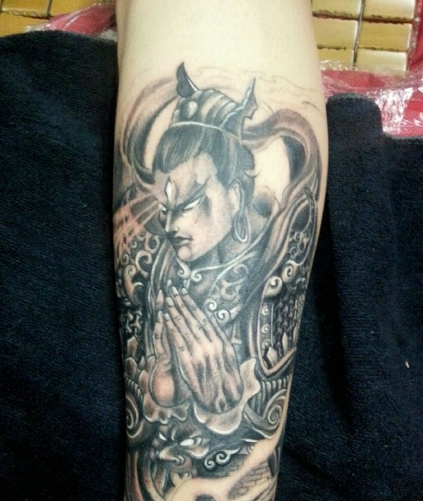手臂霸气的二郎神图腾纹身