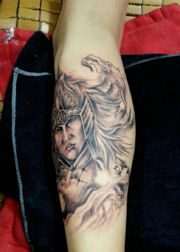 小腿部的个性军爷肖像纹身