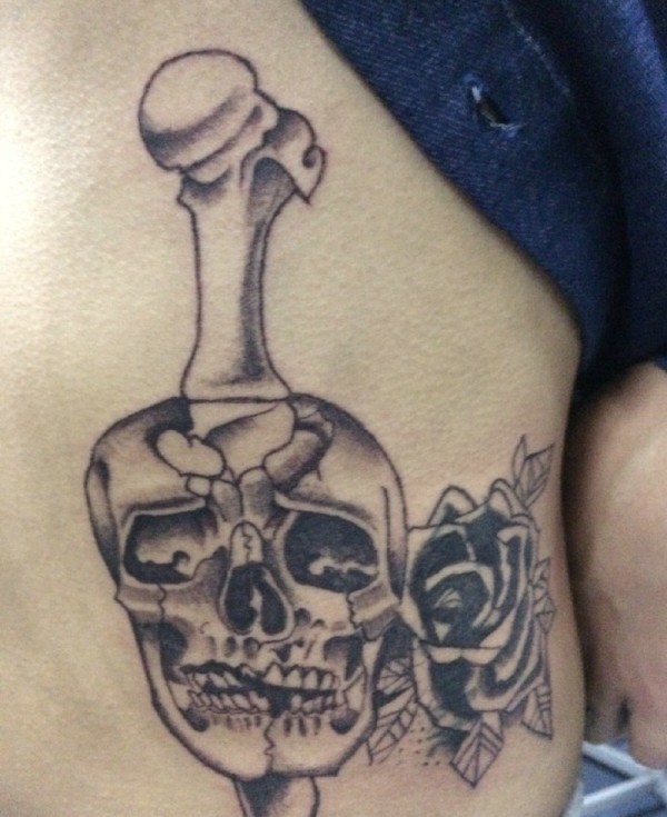 侧腰女骷髅刺青图案图片_骷髅纹身图案大全_纹身图吧
