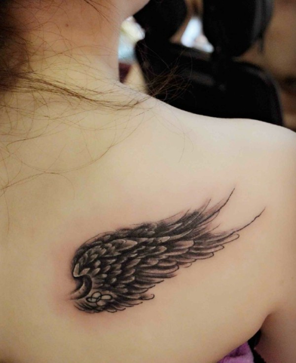 女生后腰纹身黑白灰风格抽象线条纹身图案