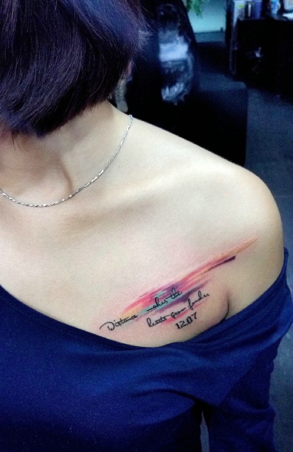 女生胸前漂亮的彩带纹身图案大全