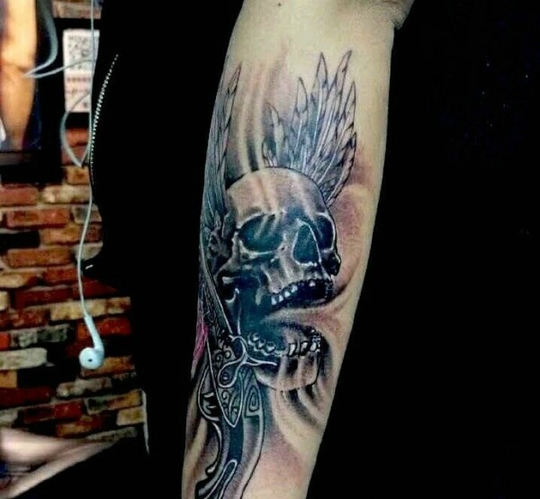 个性手臂悲伤的骷髅纹身图案图案图片_骷髅纹身图案大全_纹身图吧