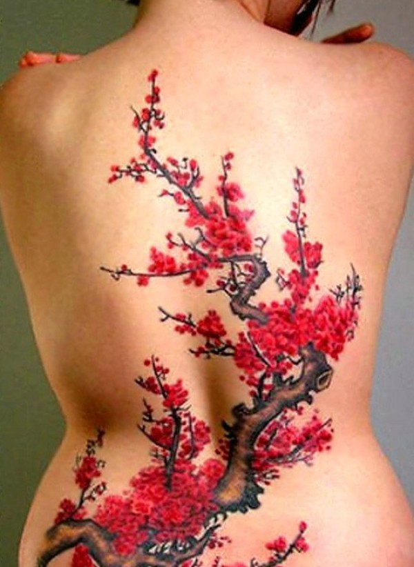 性感美女满背漂亮的梅花纹身