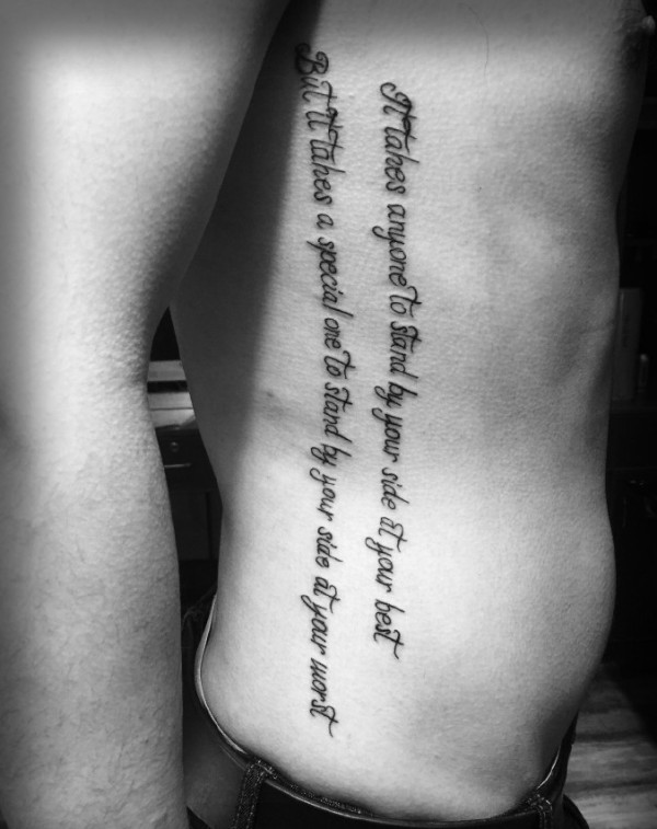 处在侧腰部的时尚小清新英文纹身
