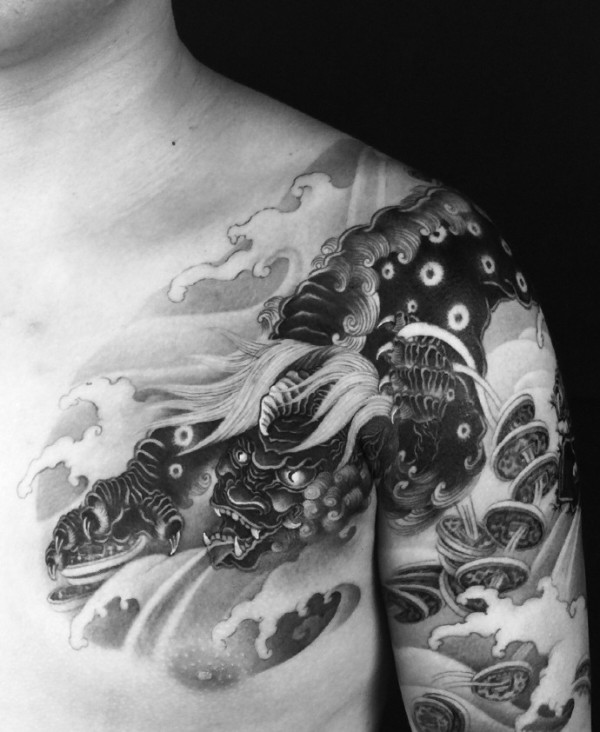日式手彫刺青作品—半甲龙很感谢客户认可手彫刺青,手彫是日本纹身的手工雕刻技术,时间可以追溯到日本17世纪的江户时代。19世纪,手彫技术被日本黑帮挪用,被用作入会仪式,象征着从此就是江湖中人。在日式传统