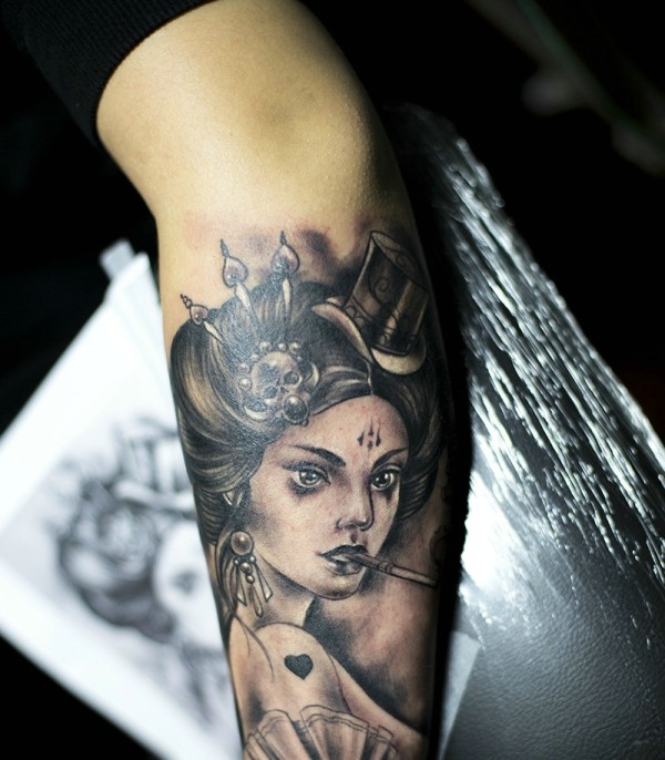 现代派的美丽花妓纹身