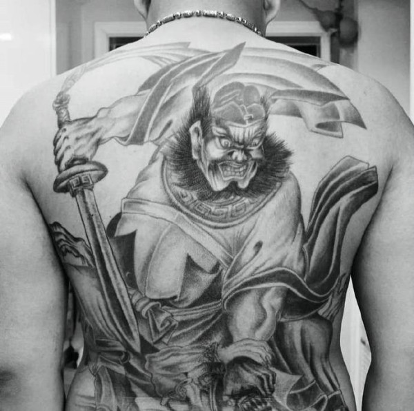 霸气无敌的满背黑白钟馗纹身