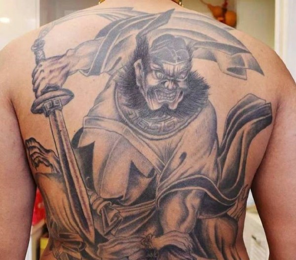 霸气无敌的满背黑白钟馗纹身