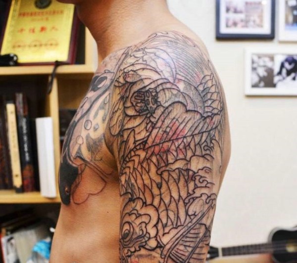 日式手彫刺青作品—半甲龙很感谢客户认可手彫刺青,手彫是日本纹身的手工雕刻技术,时间可以追溯到日本17世纪的江户时代。19世纪,手彫技术被日本黑帮挪用,被用作入会仪式,象征着从此就是江湖中人。在日式传统
