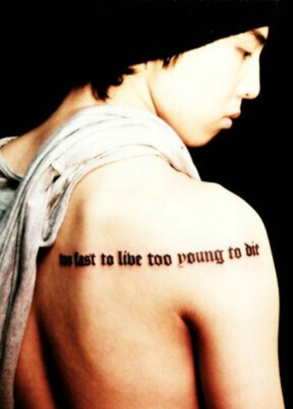 酷男肩膀上的简单英文纹身