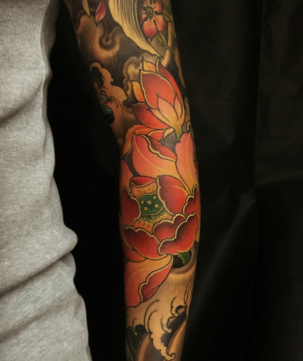 手臂莲花蛇纹身图案_臂部纹身图案大全_纹身图吧