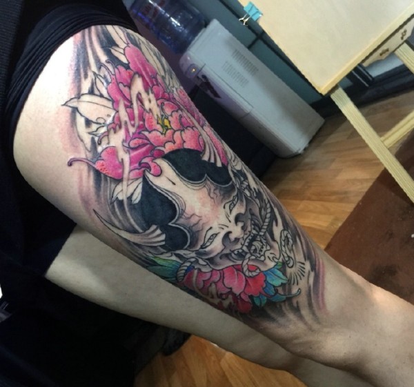 帅气的彩色花腿纹身水墨画纹身图案