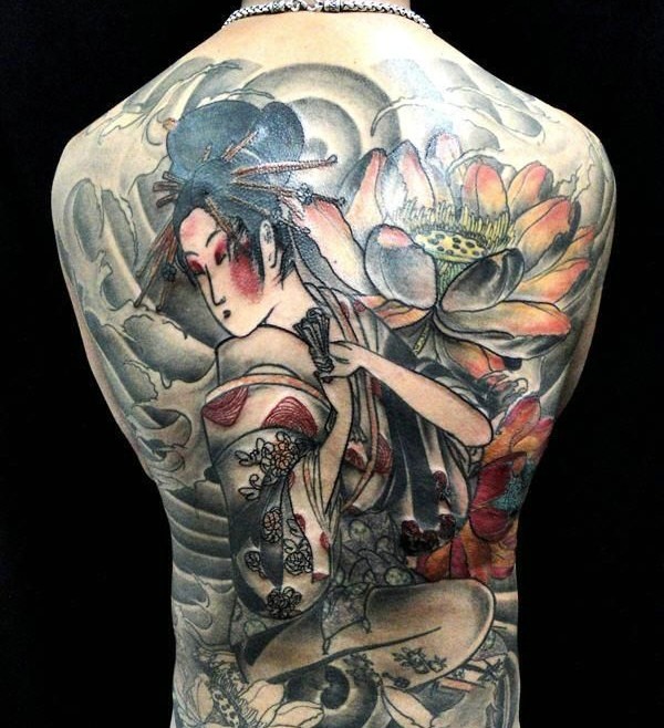 大部分男士都喜欢的满背花妓纹身
