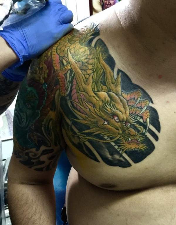 日式手彫刺青作品—半甲龙很感谢客户认可手彫刺青,手彫是日本纹身的手工雕刻技术,时间可以追溯到日本17世纪的江户时代。19世纪,手彫技术被日本黑帮挪用,被用作入会仪式,象征着从此就是江湖中人。在日式传统