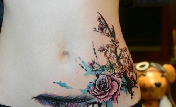 女性腰部莲花花纹刺青_腰部纹身图案大全_纹身图吧