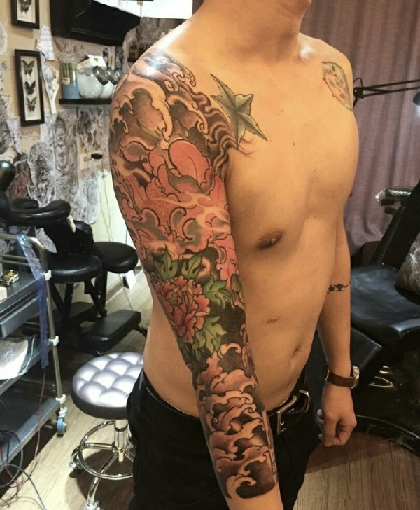 男生也爱上了手臂牡丹花纹身