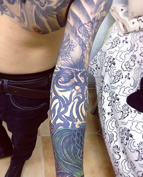 日式手彫刺青作品—半甲龙很感谢客户认可手彫刺青,手彫是日本纹身的手工雕刻技术,时间可以追溯到日本17世纪的江户时代。19世纪,手彫技术被日本黑帮挪用,被用作入会仪式,象征着从此就是江湖中人。在日式传统