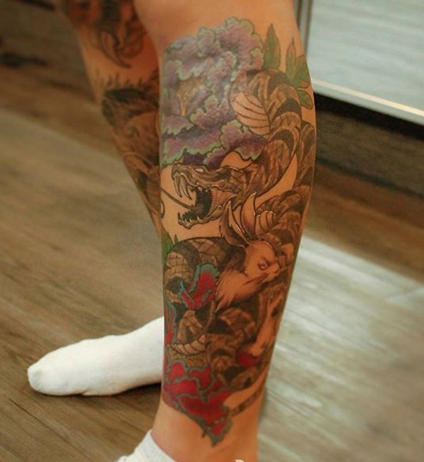 传统花腿纹身--18张传统风格的大花腿纹身图案作品