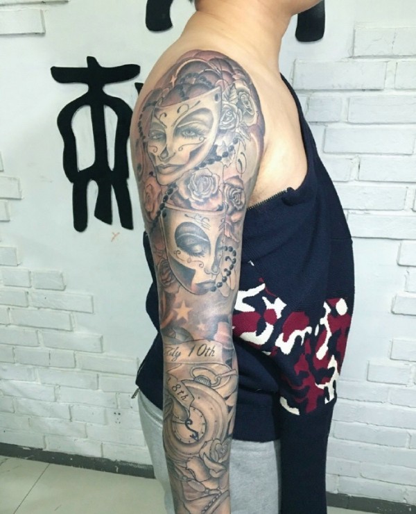 女性人物纹身图案 男生大臂纹身女性人物纹身图案