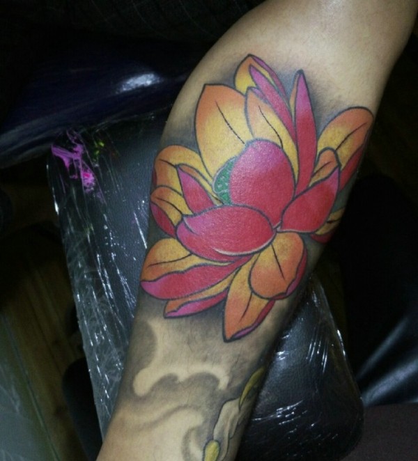 传统鲤鱼花小腿纹身_腿部纹身图案大全_纹身图吧